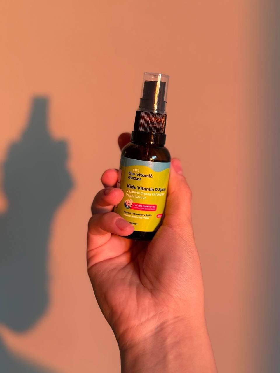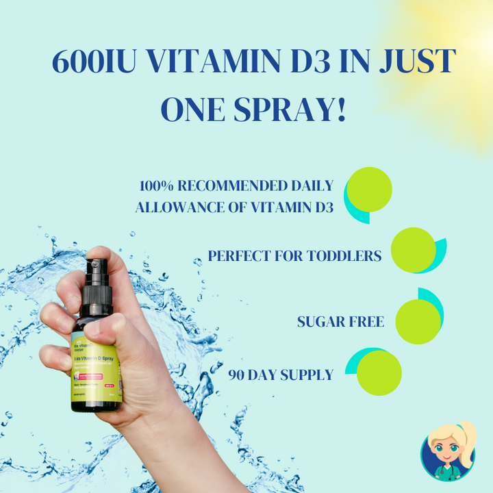 Our yummy Strawberry Spritz Kids Vitamin D3 Spray is a no-choke solution for young children - We created our spray to safely meet daily requirements recommended by doctors for kids age 1+. Vitamin D3 contributes to the development of strong bones and teeth whilst supporting healthy immune and muscle function. Just one spritz meets the recommended daily allowance of 600 IU, helping growing bodies absorb calcium and phosphorous from foods and supplements in a delicious, kid-friendly formula.